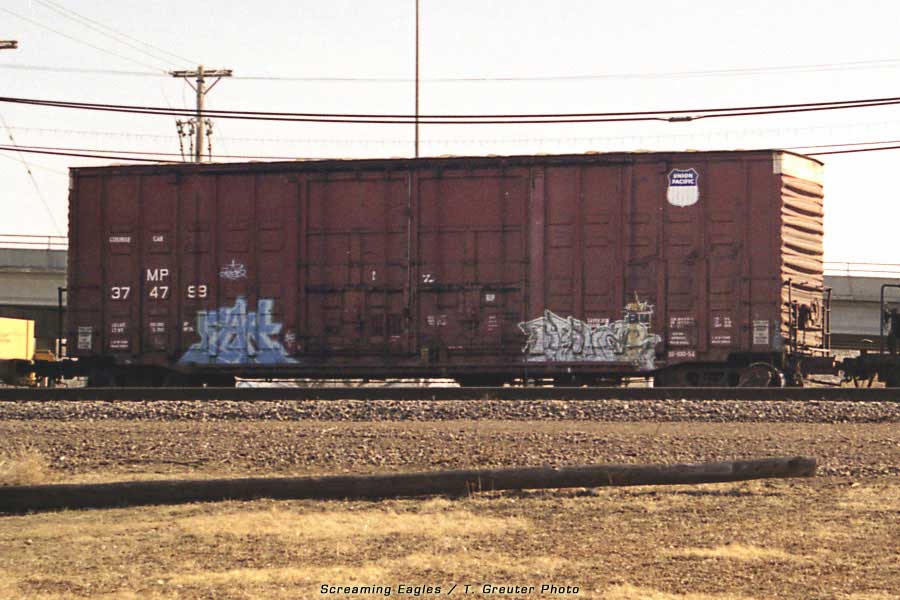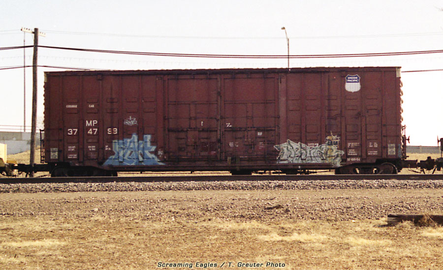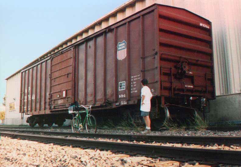 MP 357644 - built in October 1975, Single-door Railbox in U.P. paint. 9/26/95, Lincoln, NE - T. Greuter Photo |