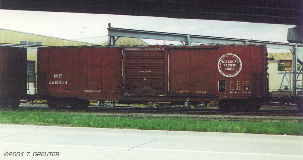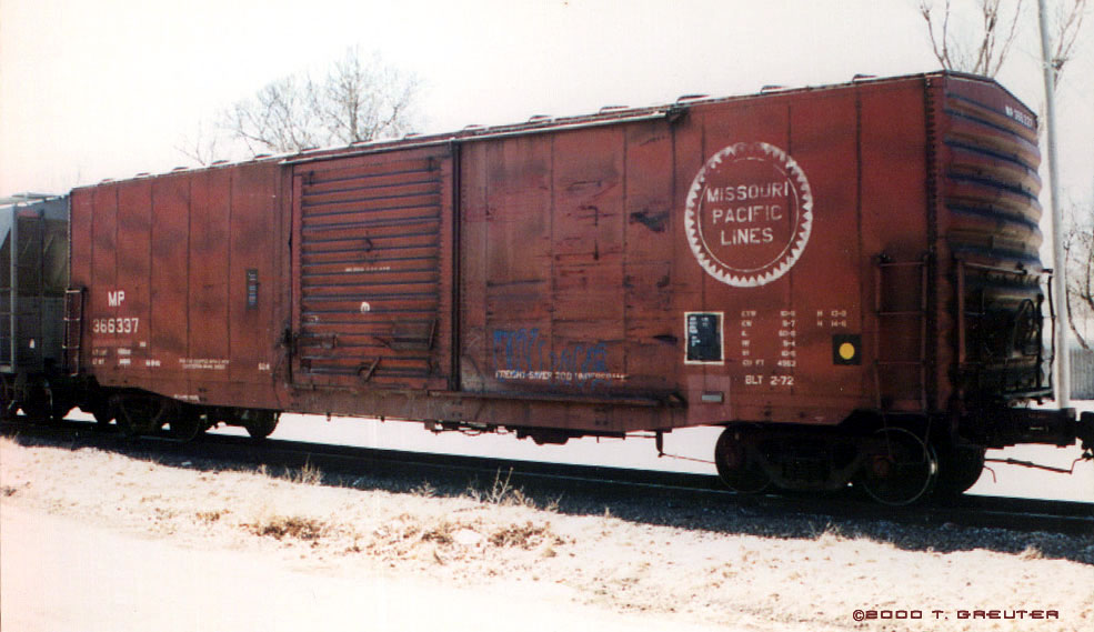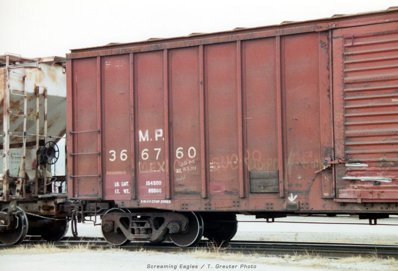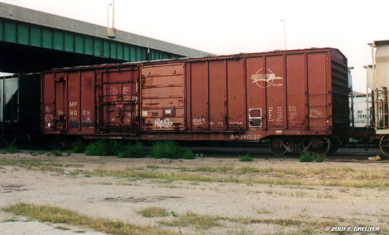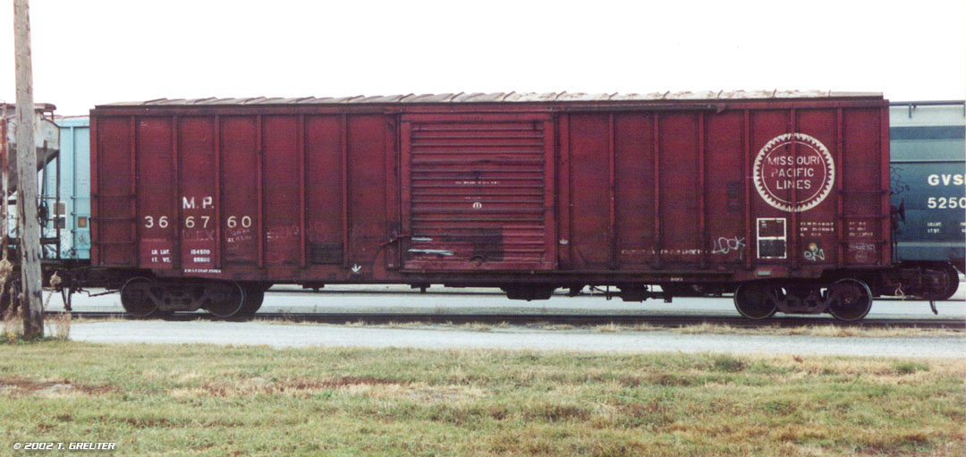 MP 366760 - 60' single-door boxcar. Council Bluffs, Iowa, Summer 2002 - T. Greuter Photo · |