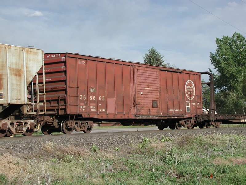MP 366663 - 60' single-door RailBox-type, at Louviers, Colorado; 6/12/01 - photo: Nathan D. Holmes; Camera: Olympus C-3000; ©RailArc |
