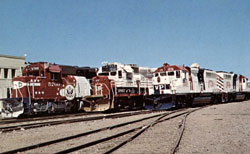 | ARR 1510 (FP7) ARR 1512 (FP7) ATSF 5700 (SD45) ATSF 5701 (SD45) ATSF 5702 (SD45) ATSF 5703 (SD45) ATSF 5704 (SD45-2) B&M 200 (GP-38-2) BN 1776 (U30C) BN 1876 (SD40-2) BN 1976 (SDP-40) CNW 1776 (GP18) Conrail 7776 (GP-38) |