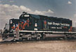 Bangor and Aroostook GP7 #1776 - was painted as the roads contribution to the Bicentennial celebration. It was numbered 1776, and named in honor of Jeremiah O'Brian, a Maine Patriot who commanded the Union ship "Unity" in a sucessful mission of capturing the British ship "Margaretta" in the first Naval Battle of the American Revolutionary War. - Bangor and Aroostook Railroad Photo/Jay Glenewinkel postcard collection |