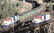 Western Pacific GP40s 1776 (WP 3540) and 1976 (WP 3541) - meet on the Keddie Wye Bridge in May 1976. - Norman Holmes Photo/Jay Glenewinkel postcard collection |