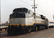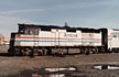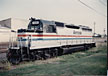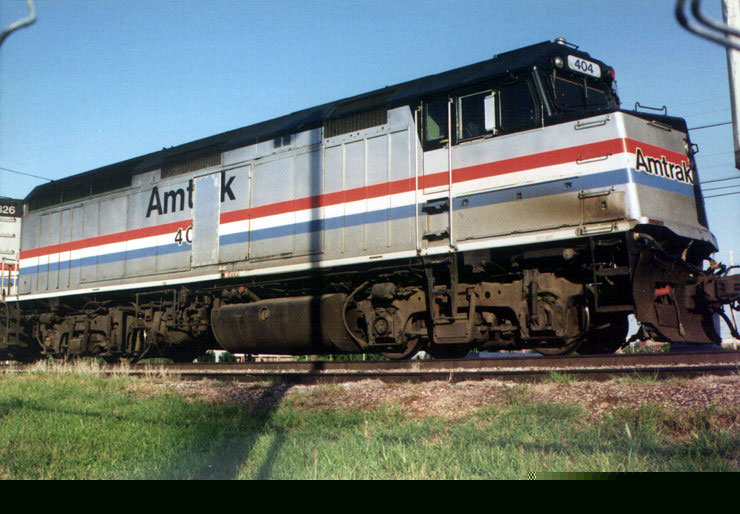 AMTK 404 is lending some pull on a BN westbound train at Lincoln, Nebraska. 6/96 - T. Greuter Photo |
