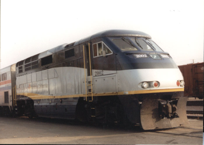 Amtrak California #2002 is seen in San Bernadino, California. - Steve Rude Photo/Jay Glenewinkel Collection |