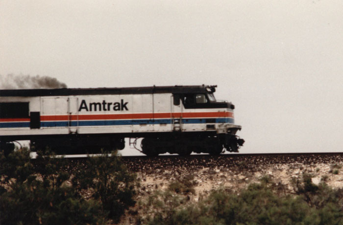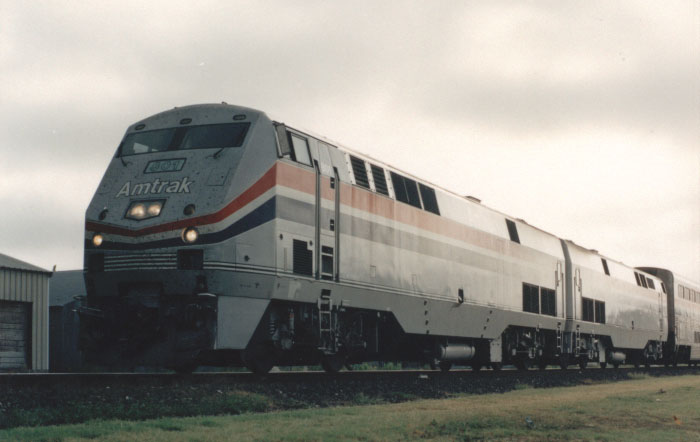 Amtrak "Genesis" #801 is in Hondo, Texas in 1997. - Jay Glenewinkel Photo |
