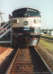 BN 1 - an F9 kept in sparkling condition now used for excursion rides poses on Track 2 before Lincoln Station. 6/29/96 - T. Greuter Photo |