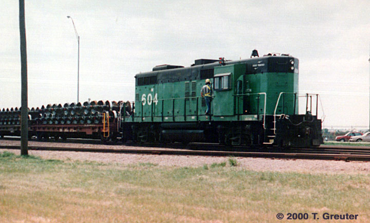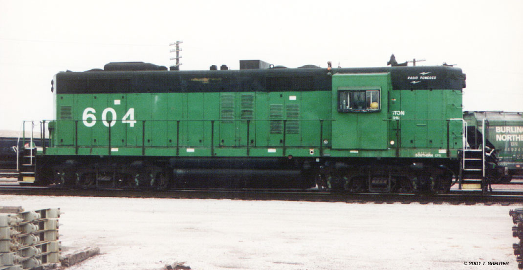 BN 604 - a modified GP 9 used as a switcher at the Havelock shops in northeastern Lincoln. 6/95 - T. Greuter Photo |