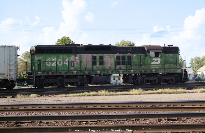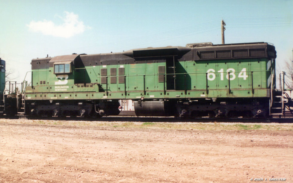 BN 6184 - These SD9's were inherited by BN from the CB&Q. 4/15/96, Lincoln, Nebraska - T. Greuter Photo |