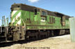 BN 6329 - SD40-2, kind of looking as if it's got a snarl on its mouth. . . hate to think what the car that collided with it must have looked like. 8/95, Lincoln, Nebraska - T. Greuter Photo |