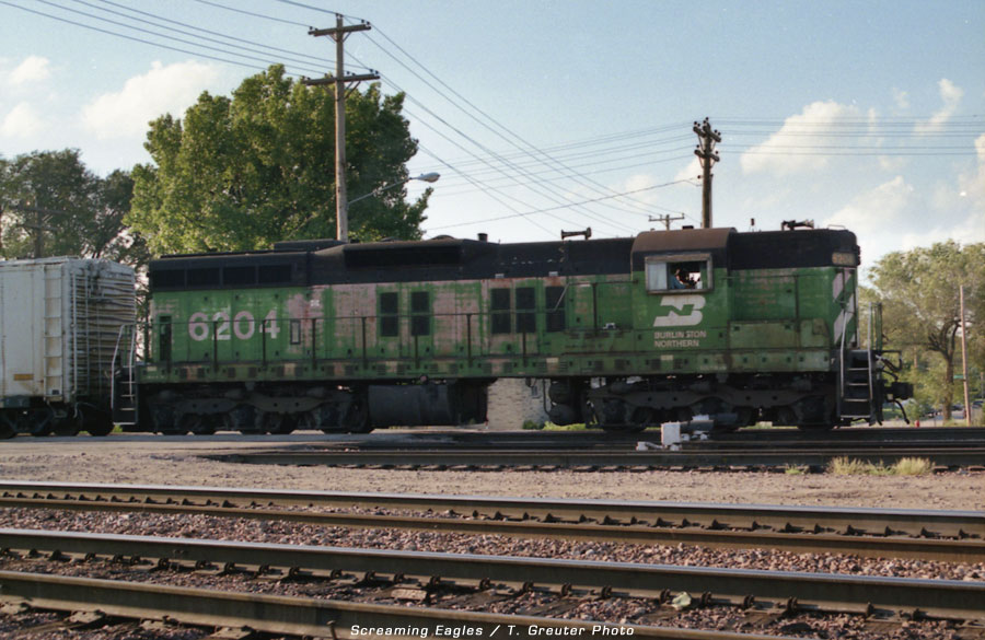 BN 6204 - with a MOW train at Hobson Yard, Lincoln, Nebraska, August 1995 - T. Greuter Photo · |