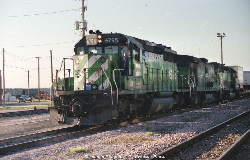 BN 6765 - stops for a crew change at Lincoln Station Yard, Lincoln, Nebraska, August 17 1995 - T. Greuter Photo · |