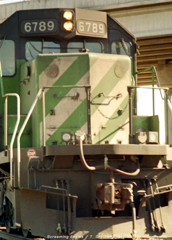BN 6789 - front detail at Lincoln Station; 1996, Lincoln, Nebraska - T. Greuter Photo · |