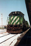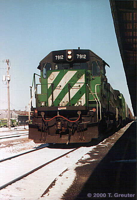 BN 7912 - One of my favorites, SD40-2 with a bumper sticker reading "I Love Danger". 11/11/95 , Lincoln, Nebraska - T. Greuter Photo |