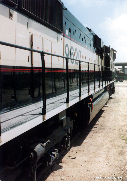 BN 9620 - looking from the back steps toward the front of an SD70 Mac. 6/28/96, Lincoln, Nebraska - T. Greuter Photo |