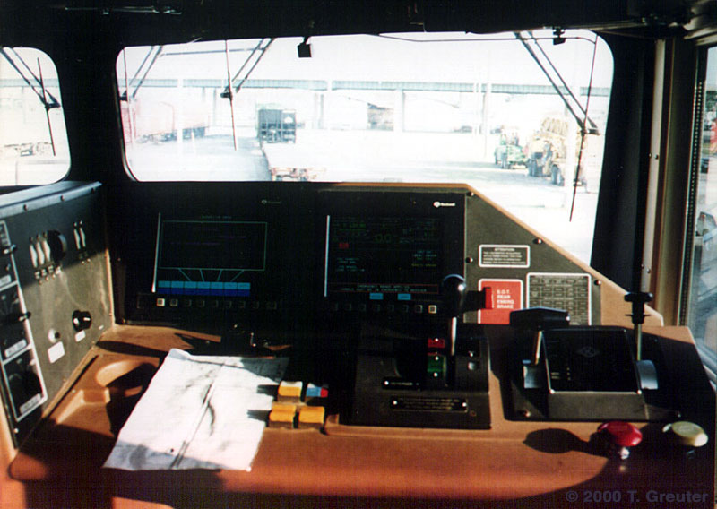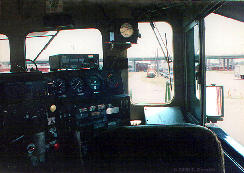 Inside the cab of a BN SD40-2, #7200. 6/17/95, Lincoln, Nebraska - T. Greuter Photo |
