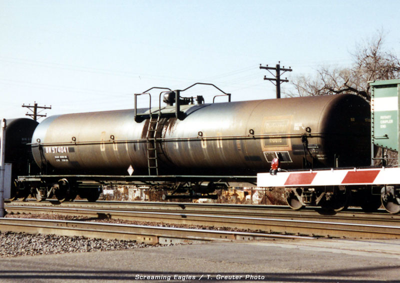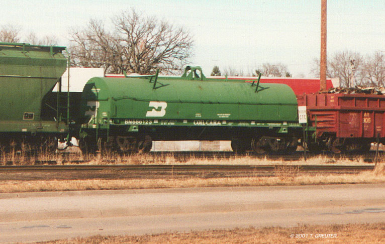 BN 974041 - ex-CB&Q tankcar with original paint clearly visible; Lincoln, Nebraska - T. Greuter Photo · |