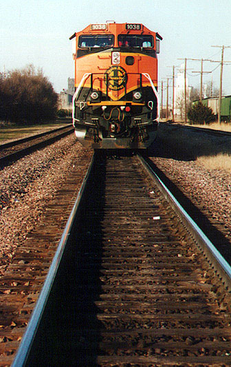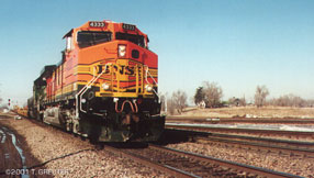 BNSF 1100 - grinds to a hault... it's been stopped due to a faulty switch ahead. - T. Greuter Photo |