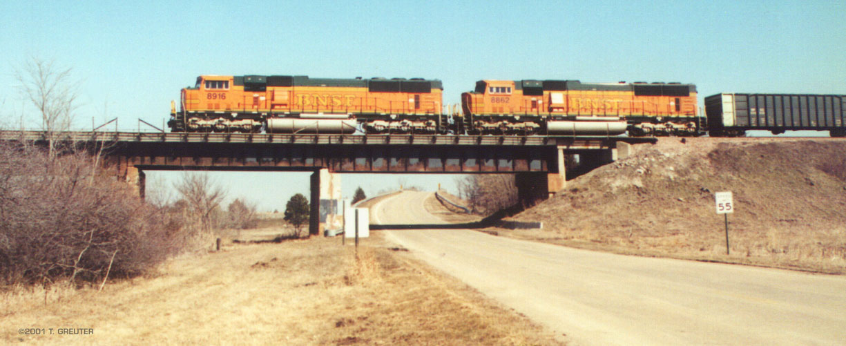BNSF 7155 - in action somewhere between Ashland and Lincoln, Nebraska - T. Greuter Photo · |
