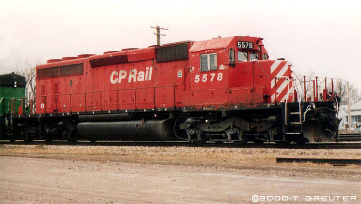 CP 5578 - an SD40-2 finds itself a long ways from home at Lincoln, NE. 3/29/96 - T. Greuter Photo |