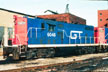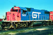 Grand Trunk Western GP38-2 5725 - was built as MP 884, and later renumbered to MP 2035. The unit operated temporarily as a Helm Lease unit before going to GT for rebuilding to GT 5725. The unit was again renumbered to GT 4925 where it is in service today. The 5725 is seen in Portland, Oregon in 1992. - Steve Schuman Photo/Jay Glenewinkel Collection |