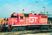 GTW 5731 - Another former MoPac GP38 is in GT dress. This unit was built as MP 886 and renumbered to MP 2037. It also operated as a lease unit for a brief time, and then went to GT to become GT 5731, and later GT 4931. Here the GT 5731 is seen in Madison, Georgia in 1992. - DW Read Photo/Jay Glenewinkel Collection |