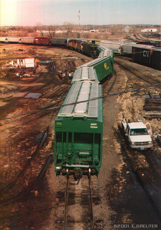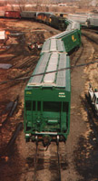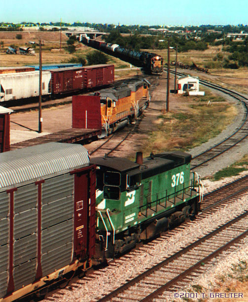The yards behind Lincoln Station offer some of the best rail action in town.The BN and UP work side-by-side in this yard. - T. Greuter Photo |