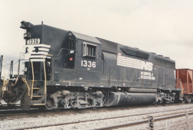 Norfolk Southern GP38-2 1336 - is on a Southern Pacific Rock train in San Antonio, Texas in 1988. - Jay Glenewinkel Photo |