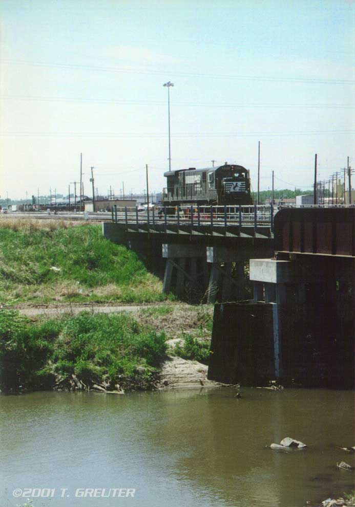 NS 8005 - pulls up to the bridge at the eastern throat of BN's Hobson Yard in Lincoln as it changes track and backs into another consist. - T. Greuter photo |