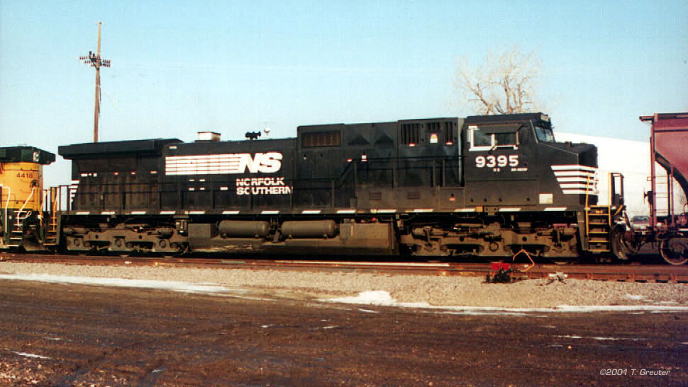NS 9395 - at the fairgrounds working on the BNSF in Lincoln. 3/3/01 - T. Greuter photo |