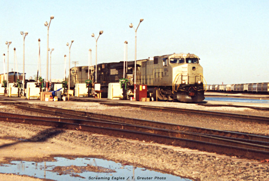 NS 3563 - a B32-8, shares the burden with UP in Union, Nebraska. 4/13/97 - T. Greuter photo |