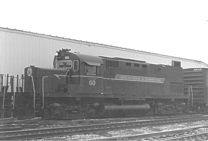 Arkansas & Missouri ALCO Locomotive #60 - works in Springdale, Arkansas in October 1992. A&M is a former Rail-Tex owned Shortline RR. - DW Read Photo/Jay Glenewinkel Collection |