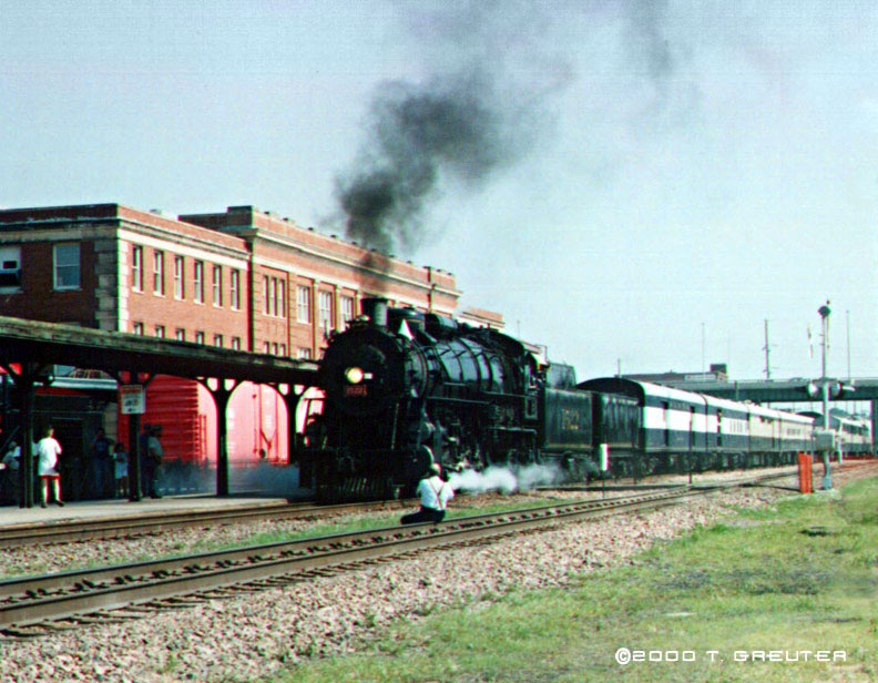 ![]() SLSF 1522 steams backwards into the BN yard after a day of basking in railfan attention. 6/14/95 |