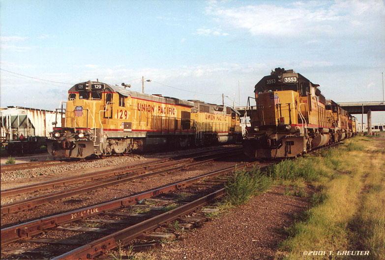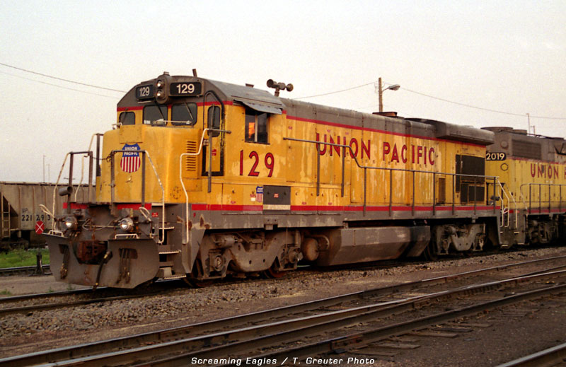 UP 129 - a B23-7 once known as Missouri Pacific #4629, at Lincoln, Nebraska. 7/7/01 - T. Greuter Photo |