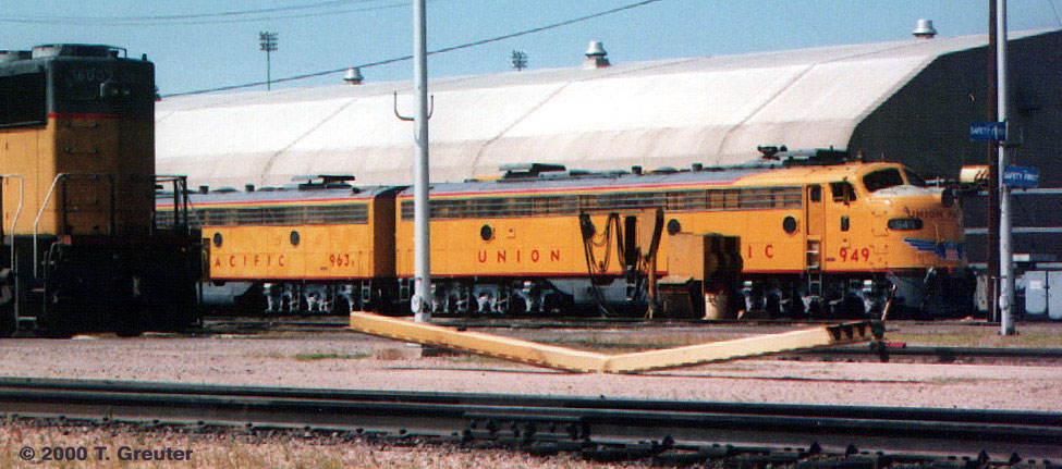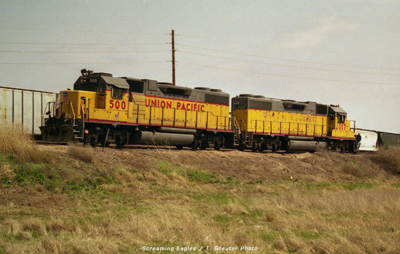 ![]() Snoot-nose SD40-2 UP 3311 at Union, Nebraska, 3/31/01 - T. Greuter Photo |