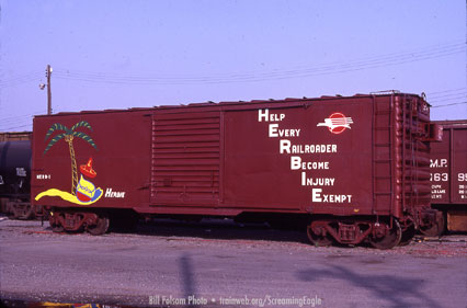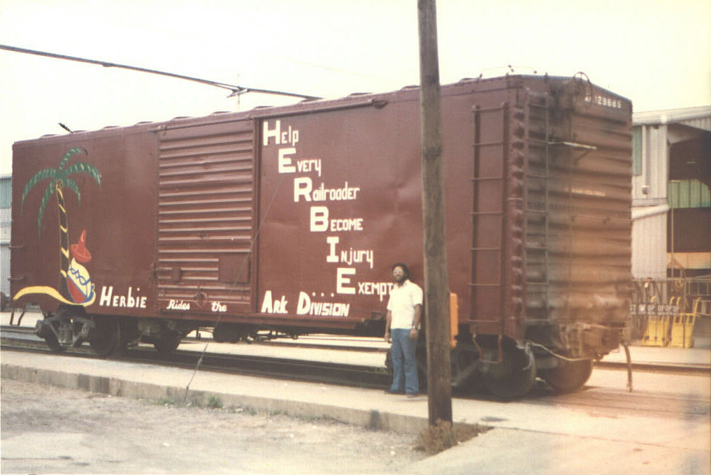 History 101: Just Who Was Herbie? Herbie Meyer was the original artist behind the fellow enjoying his siesta under a sombrero resting against a palm tree drawings. The name Herbie followed by a date was always under him. Herbie worked as a switchman for a yard and transfer company, other than Missouri Pacific, somewhere in the St Louis area, possibly the TRRA (one story has it that he was a switchman on the Wiggins Division of the TRRA in St Louis). He died December 9th, 1995, when he was in his eighties. He is now a legend in the graffiti community, as more and more practitioners are researching the history of railroad graffiti by railworkers and hobos, and they are finding his prodigious output of drawings on the railcars had an apparent omnipotent presence in vast railroad network for over three decades. There was an article in the CB Hist Society magazine Cotton Belt Star about Herbie identifying him as a carman at East St Louis, hence so many 'tagged' MoPac and Cotton belt cars. (gathered from the MOPAC Group) "A story that appeared in the Brotherhood of Locomotive Engineer's