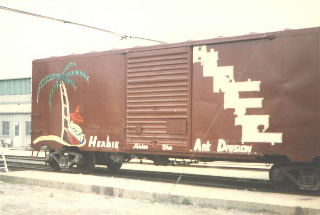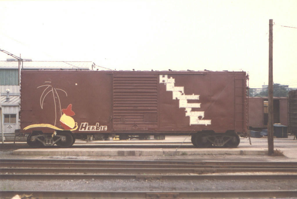 Railroad.union.rpi.edu Photo "Herbie" Graffiti - closeup of graffiti on Atlanta & St. Andrews Bay box car no. 8082 found in the Milwaukee yard in Mason City, IA, on August 4, 1977. - SD Marty Photo