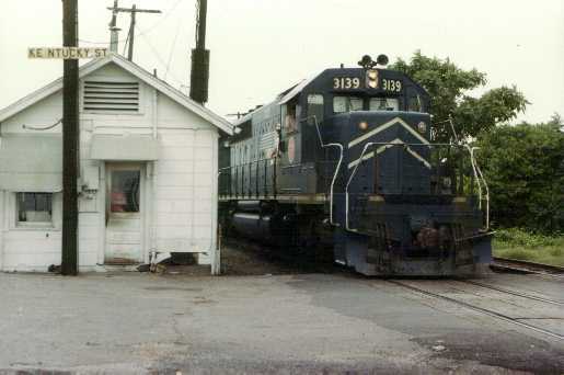 MP 1731 - A MoP train lead by a GP15-AC. Missouri Pacific was just one of many railroads that crossed the Mississippi River at Kentucky Street, into Millington, Tennessee,1983-84 - Elden Baker Photo, Trainwatching at Kentucky Street |