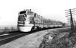 1939 marked the introduction of the first streamliners on the MP system. These included EMC/EMD-built E3, AA6, and E6 diesels, each painted in an all-new elaborate blue/gray design with yellow trim and a MPL stainless steel spread-eagle on the nose. These were part of the new "Route of the Eagles" passenger service, which in the foloowing years spread as far west as the Grand Canyon and California. The Missouri River Eagle was inaugurated March 10, 1940 for the St. Louis-Kansas City-Omaha passenger service. Two EMD E-3's, #7000 and 7001 were the units on the River Eagle's first run. 1940 was wartime - the streamlined EMD FT was delivered to MoPac in a slightly less elaborate paint scheme from her passenger-assigned sisters, and invaded the steam ranks as it went into freight service to help the war effort. |