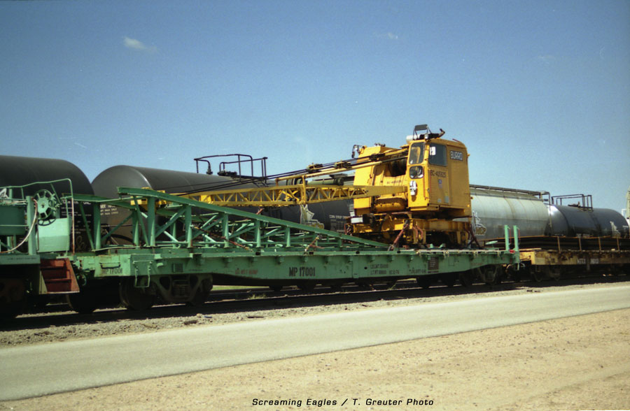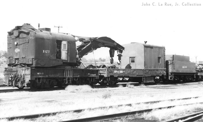 Every railroad has to mantain the line 24/7 - especially the Missouri Pacific in particular. When other Class 1 roads adopted a routine of "deferred mantainence" the MoPac worked harder than ever to to make the right-of-way safer, faster and stronger. As a result they were among the healthiest of railroads by the 1980's. The work equipment specifically designed for mantaining the right-of-way and repairing its rolling stock played a key role in keeping the trains rolling... everything from Ballast cars, rail cars, wheel cars, tool cars, bunk cars, weed sprayers, snowplows, burro cranes and wreckers, and the simple push-car to a sweet little motorized Speeder.On the other hand old and obsolete rolling stock, such as boxcars (often being rebuilt into tool cars) and cabooses, enjoyed a second life as they entered non-revenue service. In fact MoPac converted two cars from the long gone steam era into M. of W. equipment which was still used well past the UP merger; old coal tenders rebuilt into push snow plows and water tenders were recycled for weed spraying trains.