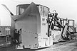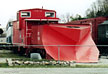 | Spreaders - The first Jordan spreaders came to the system at the turn of the century. These spreaders, eqipped with high blades, were extremely versatile, employed in snow fighting, ditching or roadbed contouring. Unpowered, they were pushed from behind, a job often filled by a Geep. A number survived to see their original wood sheathing replaced by steel during the MoP's modernization programs of the 60's and 70's. |