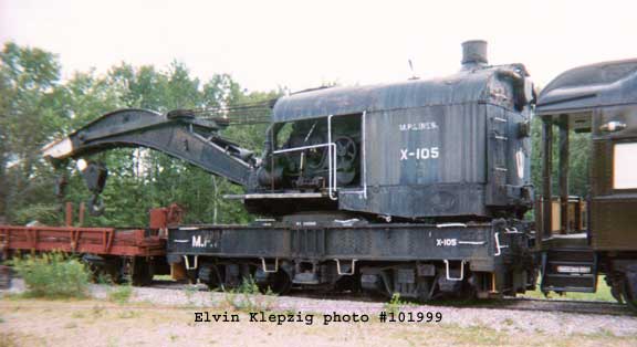MP X 105 - wrecker crane at Mid-Continent Railway at North Freedom, Wisconsin, 10/19/99. - Elvin Klepzig photo |