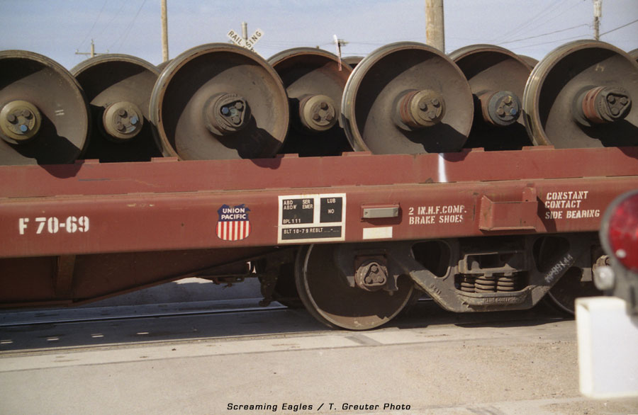 | Wheel Cars operated in interchange service to and from various foundaries, transporting new wheels. |