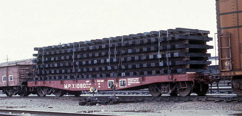 MP X 1080 - a Panel Flatcar at North Little Rock, Arkansas; 1970's - photo © copyright George Elwood, used with permission. |