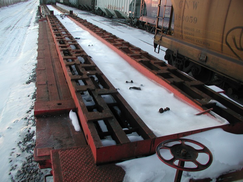 MP 99123 - The same Wheel car looking down on the wheel rest slots cut into the anchoring area. Ames yard, Iowa; 2/17/01 - photo © RailArc |