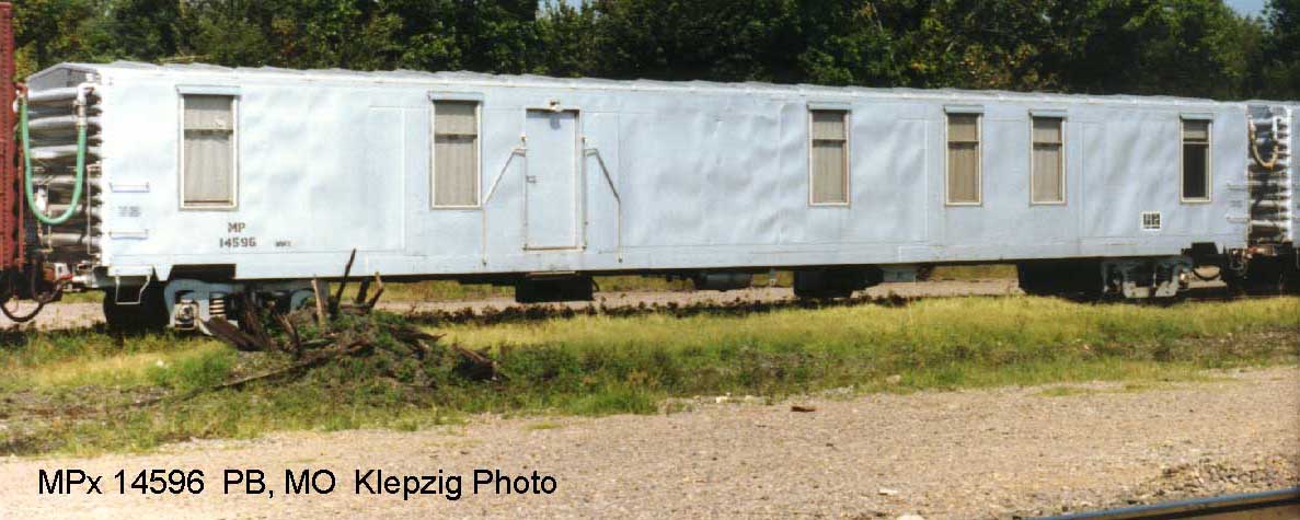MP X 14596 - ex-Express car as a crew car. Poplar Bluff, MO - photo © copyright Elvin Klepzig |