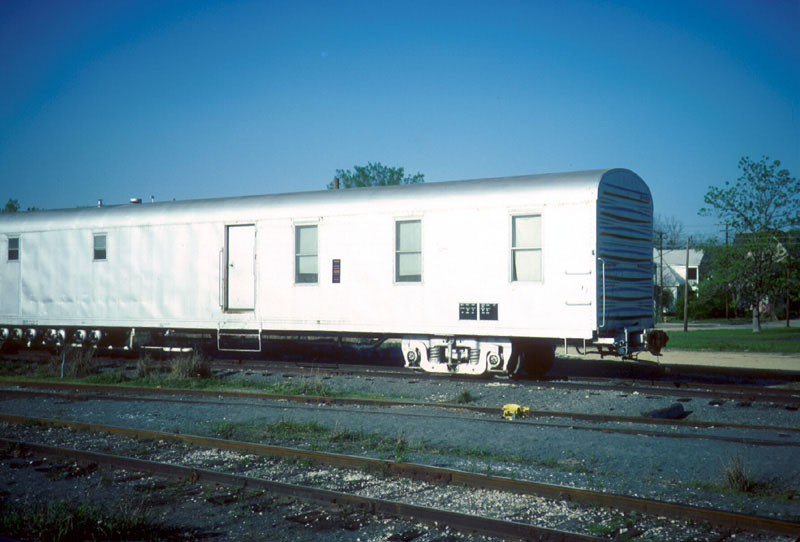 Crew Cars Whether starting life as troop cars during the dark days of World War Two, or as the short-lived Express mail cars from the 1960's, many continued to find a useful service on the railroad as MoW Crew cars in. Foreman's cars and bunk cars were often nothing more than converted obsolete 40' wood or steel boxes. MoW crew car equipment between 1950-60's wore boxcar or oxide red on the body and yellow over the ends. Later years saw the over-all aluminum color scheme being adopted on these cars. (Special thanks to Brian Paul Ehni for providing many of the images shown here) |