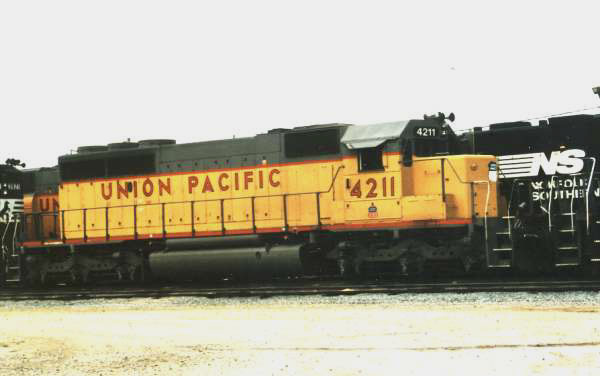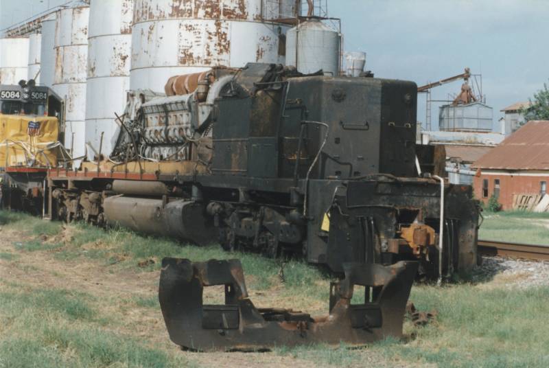 The remains of UP 4211 - sits on a service track in Devine, Texas in 1997. Here the 4211 is in the process of being scrapped out. - Jay Glenewinkel Photo |