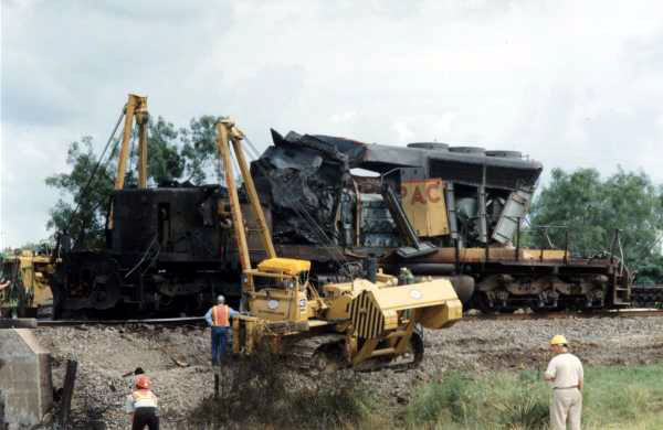 Pacific #3211 - the Life and Death of an SD40-2 The many changing faces of a MoPac locomotive, SD40-2 MP 3211 - it's life from Bluebird into Canary; in the Post-merger Era as the renumbered #4211; and finally its demise as it was involved in a headon collision in Devine, TX in 1997 - all seen in this unique set of photos. This is an exclusive series by Jay Glenewinkel. In 1990, Jay was a crew van driver for MP (at that time it was still referred to as Missouri Pacific in San Antonio). He later later was a crew van driver for Southern Pacific, then again, from 1996 up until June 1997 (when the Devine Collision Occurred) he was a crew van driver for Union Pacific. Jay was personal friends with all 4 crew members involved in that Devine Wreck. |