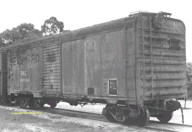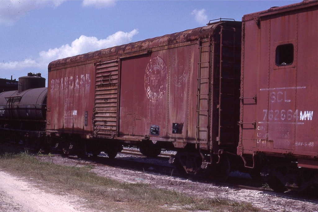 Records show that as many as 357 of these cars lasted into (and beyond) the Seaboard Coast Line (SCL) years (1967-1981) wearing road-numbers 819000-819499. What service they performed during these years is unclear, but they were still listed in full on the roster as late as 1972, therefore very possibly still in some sort of revenue service. A small handful of them lasted even longer... at least as late as 1988 in MOW service such as the one in the four following photos.