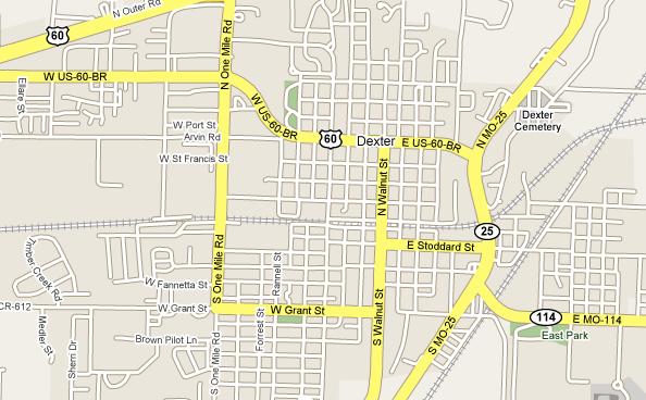 There is an ex-Mo-Pac railroad bridge over Highway 25 that joins the MP to the old SSW, now all UP. No Amtrak Trains service Dexter. About 60 to 100 trains per day pass through Dexter.